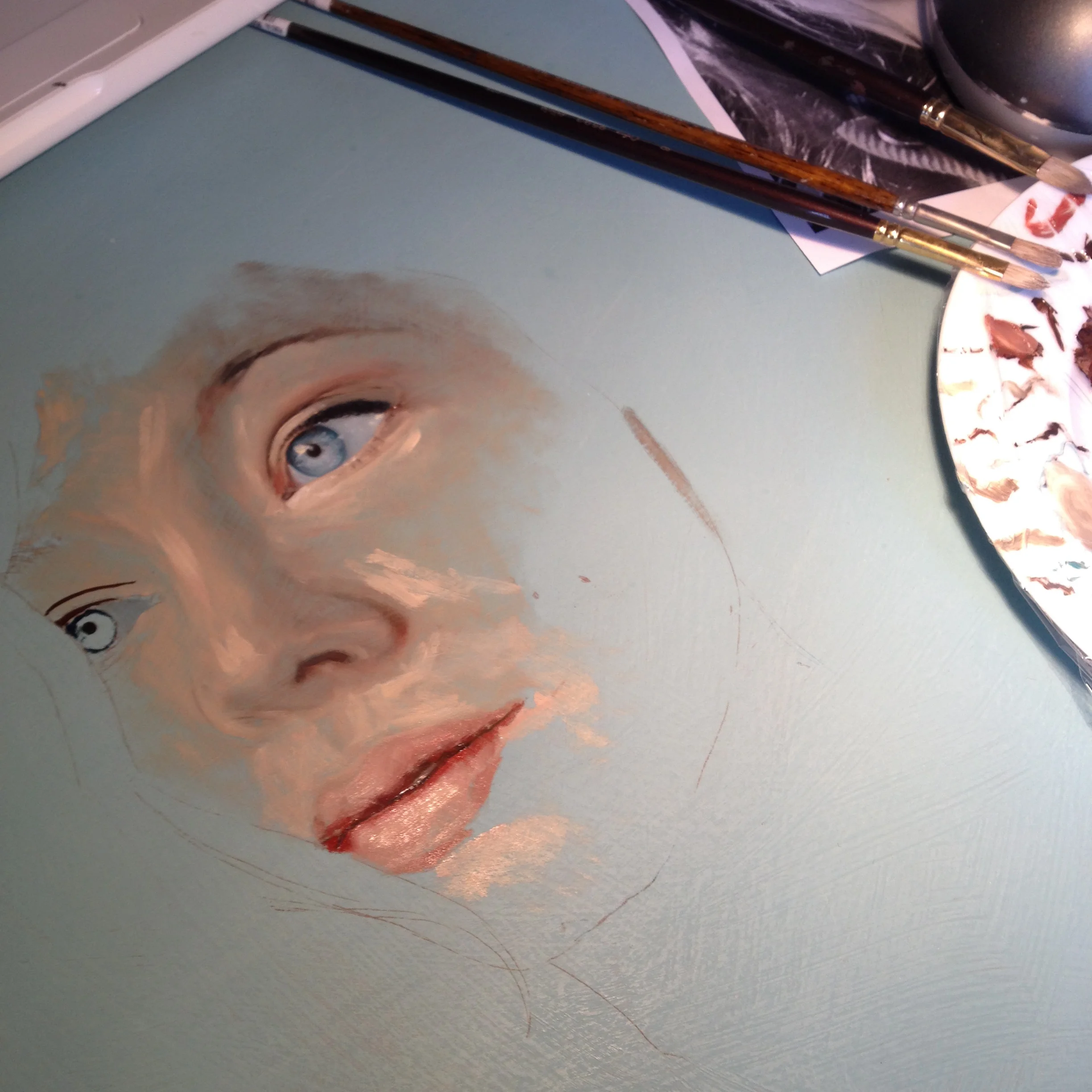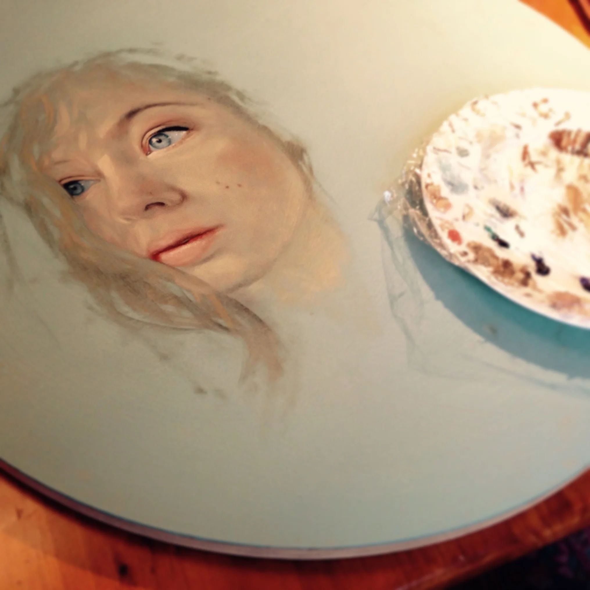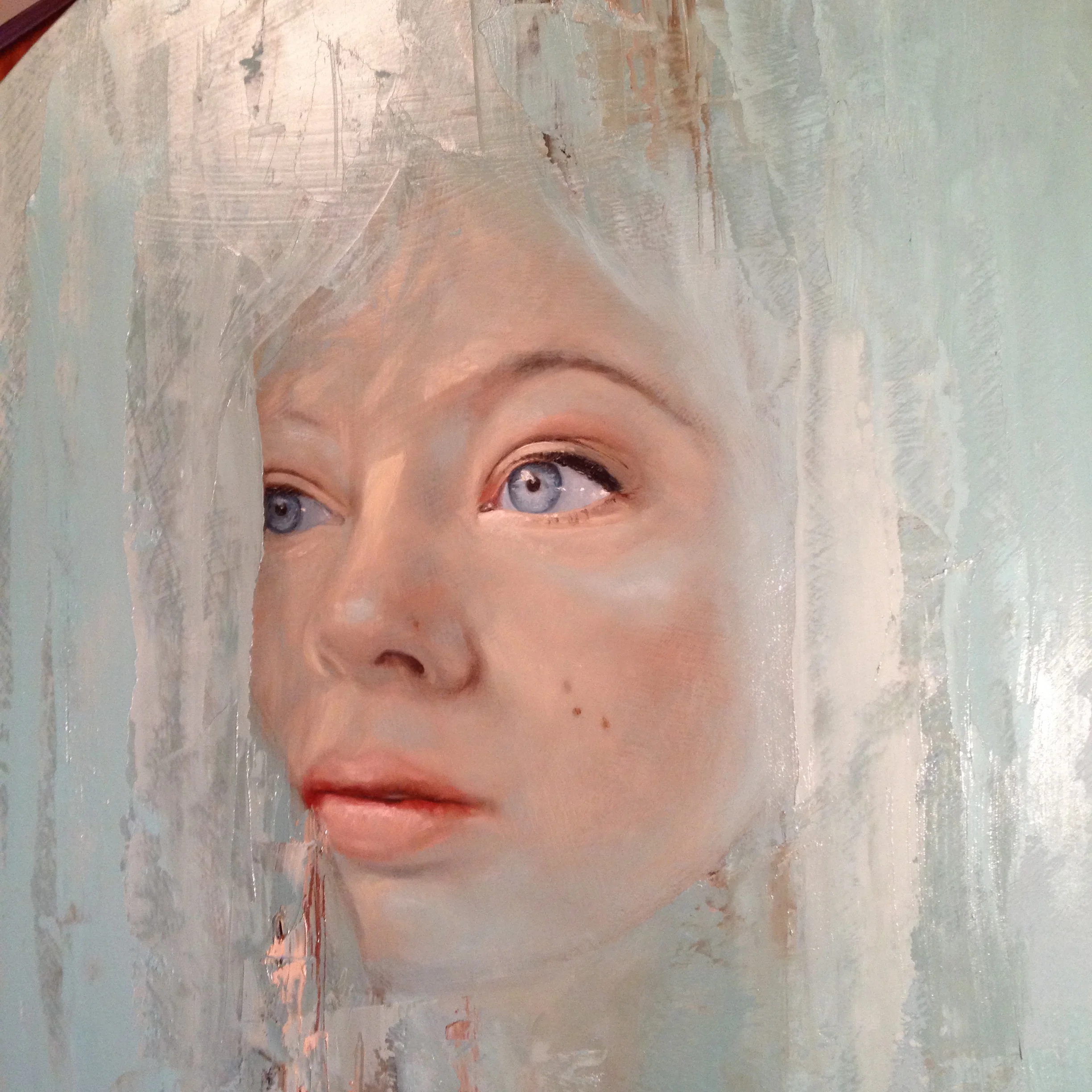 The making of Wallflower September 7, 2015 Adding fine details like eyelashes Wallflower 2015, oil on board, 600mm diameter.